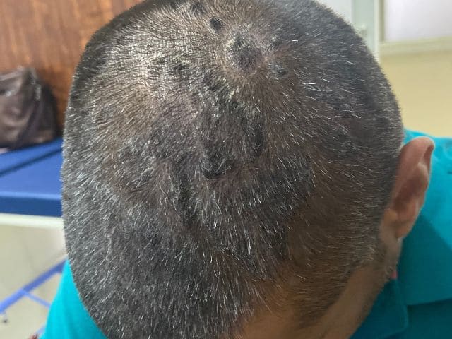 The destruction of the hair follicle occurs below the skin surface so there may not be much to see on the scalp skin surface other than patchy hair loss. Affected areas may be smooth and clean, have redness, scaling, increased or decreased pigmentation. In scarring alopecia the hair follicles are permanently damaged and can not be reversed. It can be slow or stopped with help of drugs.
